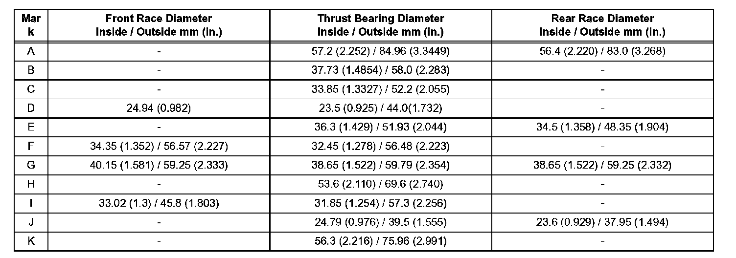 Used Bearing: 0.26 - 0.51 Nm (2.7 - 5.2 kgf-cm, 2.3 - 4.5 inch lbs.)