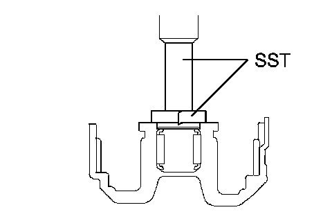 (c) Using SST and a press, install the needle-roller bearing to the transaxle case.