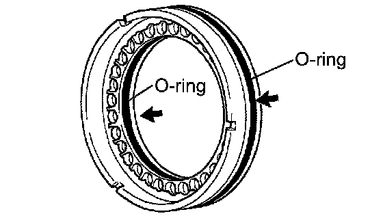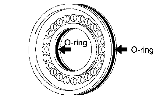 NOTICE: Install the thrust bearing properly so that no-colored race will be visible.
