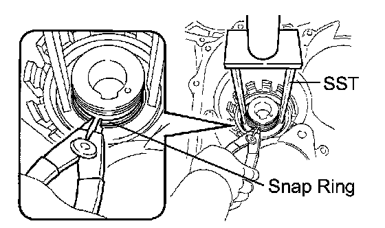(b) Using a snap ring expander, install the snap ring to the transaxle case.