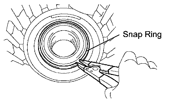 ^ The snap ring should be fixed surely in the groove of the transaxle case.