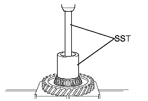 (b) Using SST and a press, install the tapered roller bearing to the counter drive gear.