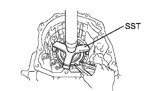 ^ Press-fit the bearing outer race until it contacts the transaxle case.