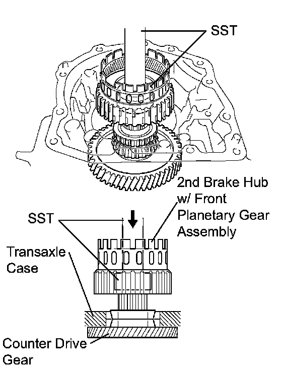 (c) Using SST and a press, install the counter drive gear and bearing to the transaxle case.