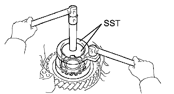 (e) Using SST and a torque wrench, measure the turning torque of the bearing while rotating SST at 60 rpm. When the measured value is not within the specified value, gradually tighten the nut until it reaches the specified value.