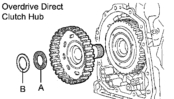 NOTICE: Installing the bearing, hold the part on the side of the overdrive clutch hub.