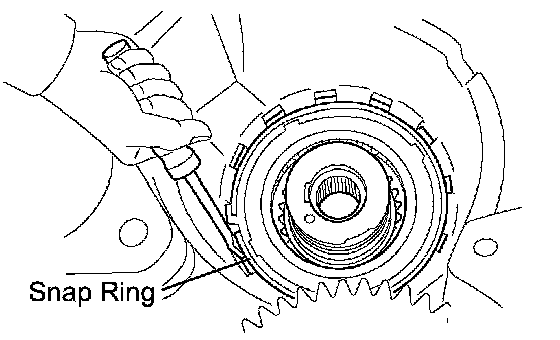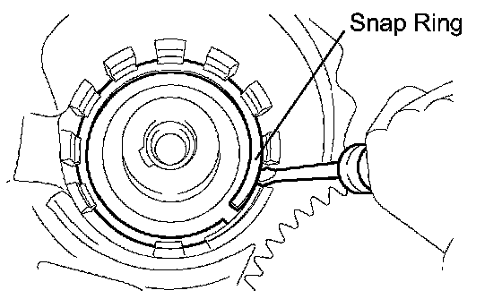NOTICE: The snap ring should be fixed certainly in the groove of the transaxle case as the gap exists except in the lock of teeth.