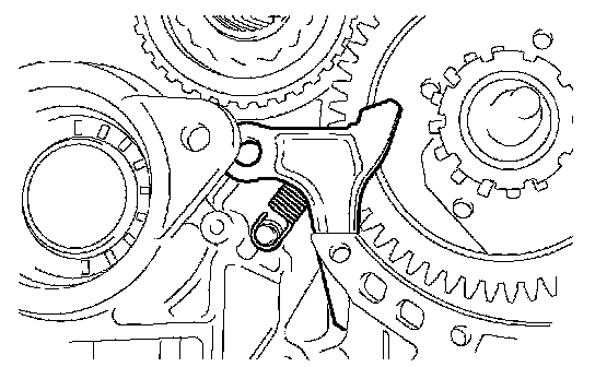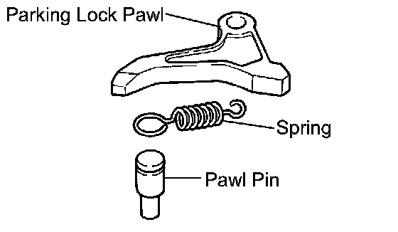 (b) Temporarily install the parking lock pawl, shaft and spring to the transaxle case, as shown in the illustration.