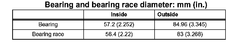 NOTICE: Install the thrust bearing properly so that the no colored race or blue ink jet race will be visible.