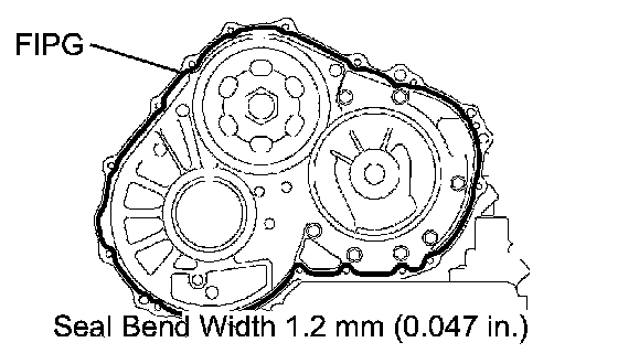 NOTICE: Concerning about the amount of the FIPG application, the amount should be controlled to from even sealing film on entire flange surface and have slight protrusion of the FIPG all around of the connecting area. The FIPG shall be applied continuously on the flange.