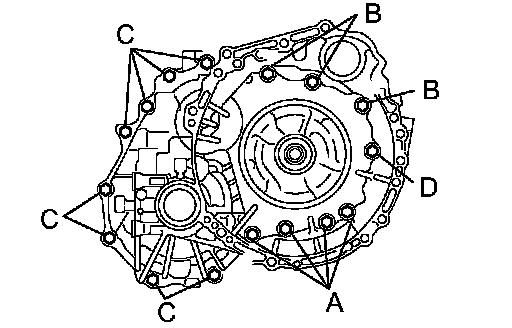HINT: Apply seal packing or equivalent to the bolt A and bolt D.