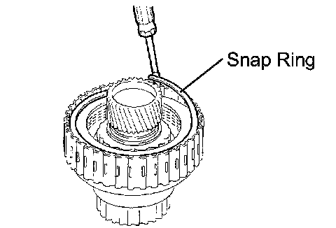 (e) Using a snap ring expander, install the snap ring to the underdrive clutch drum.
