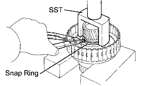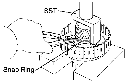 (b) Using a snap ring expander, remove the snap ring.