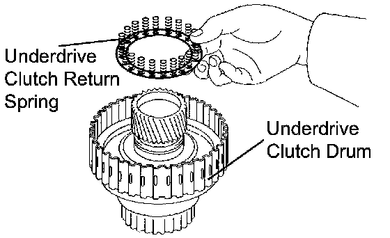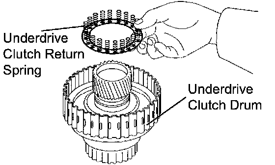 (d) Remove the return spring from the underdrive clutch drum.