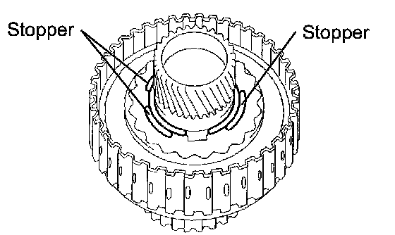 NOTICE: The end gap of the snap ring should not coincide with any of the stopper.