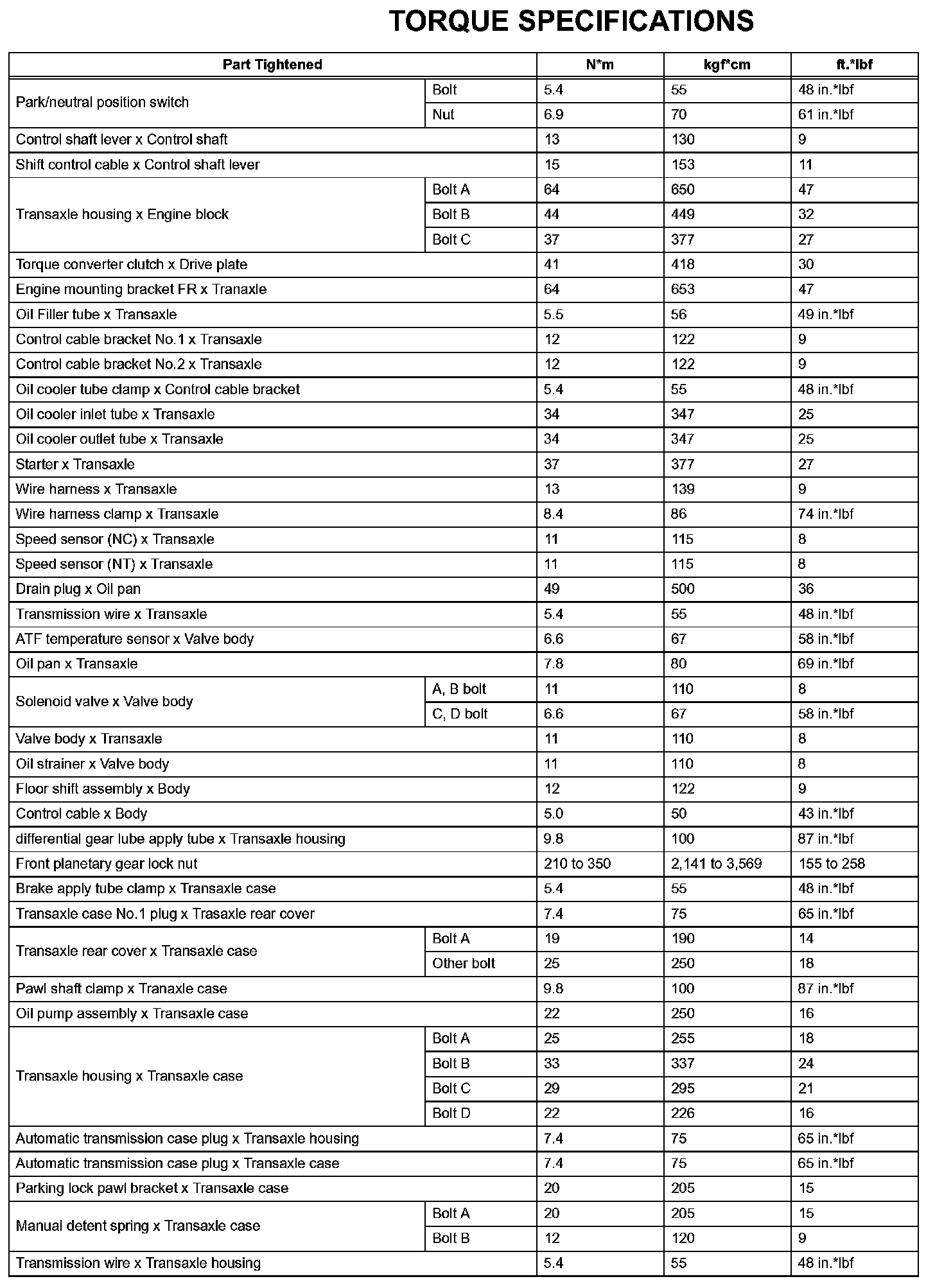 Automatic Transaxle - Torque Specifications (Part 2):