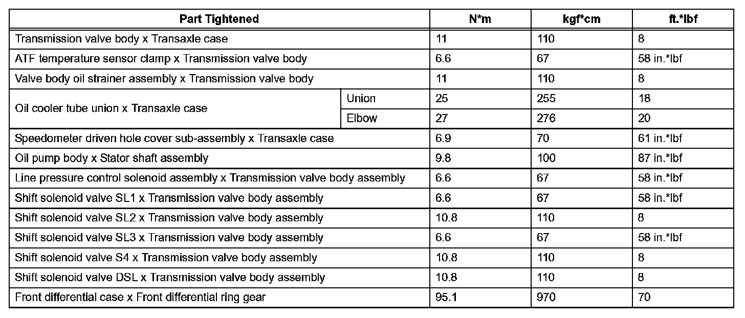 Automatic Transaxle - Torque Specifications (Part 1):