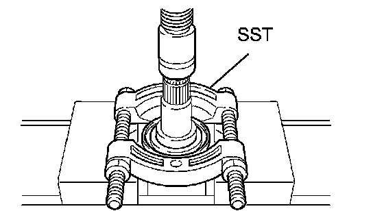 a. Using SST and a press, remove the drive shaft dust cover.