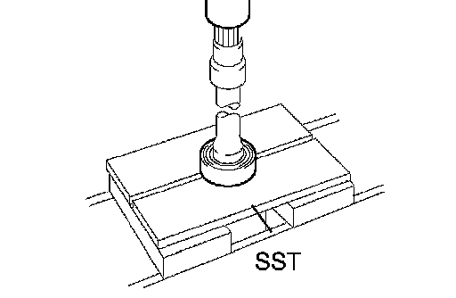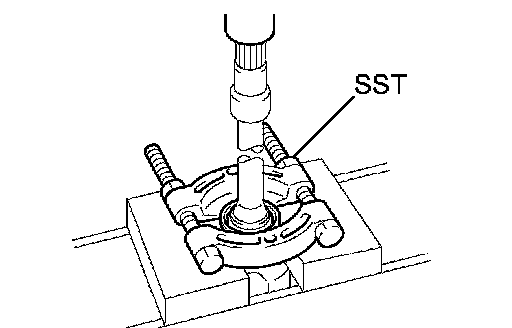 b. Using SST and a press, remove the bearing.