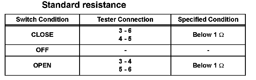 If the result is not as specified, replace the switch.