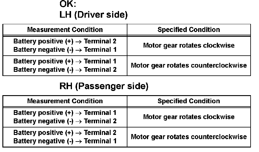 If the result is not as specified, replace the motor assembly.