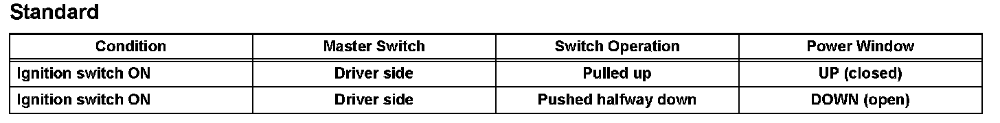 a. Check that the driver side power window operates as follows: