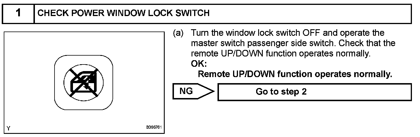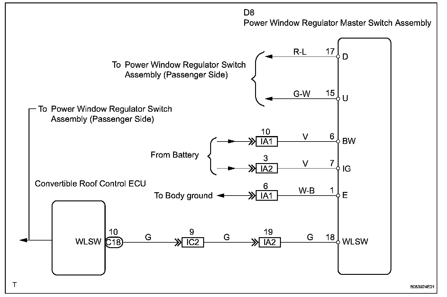 With the ignition switch ON, the power window regulator master switch transmits remote switch signals to the passenger side power window regulator switch. Then, the regulator switch drives the power window regulator motor.