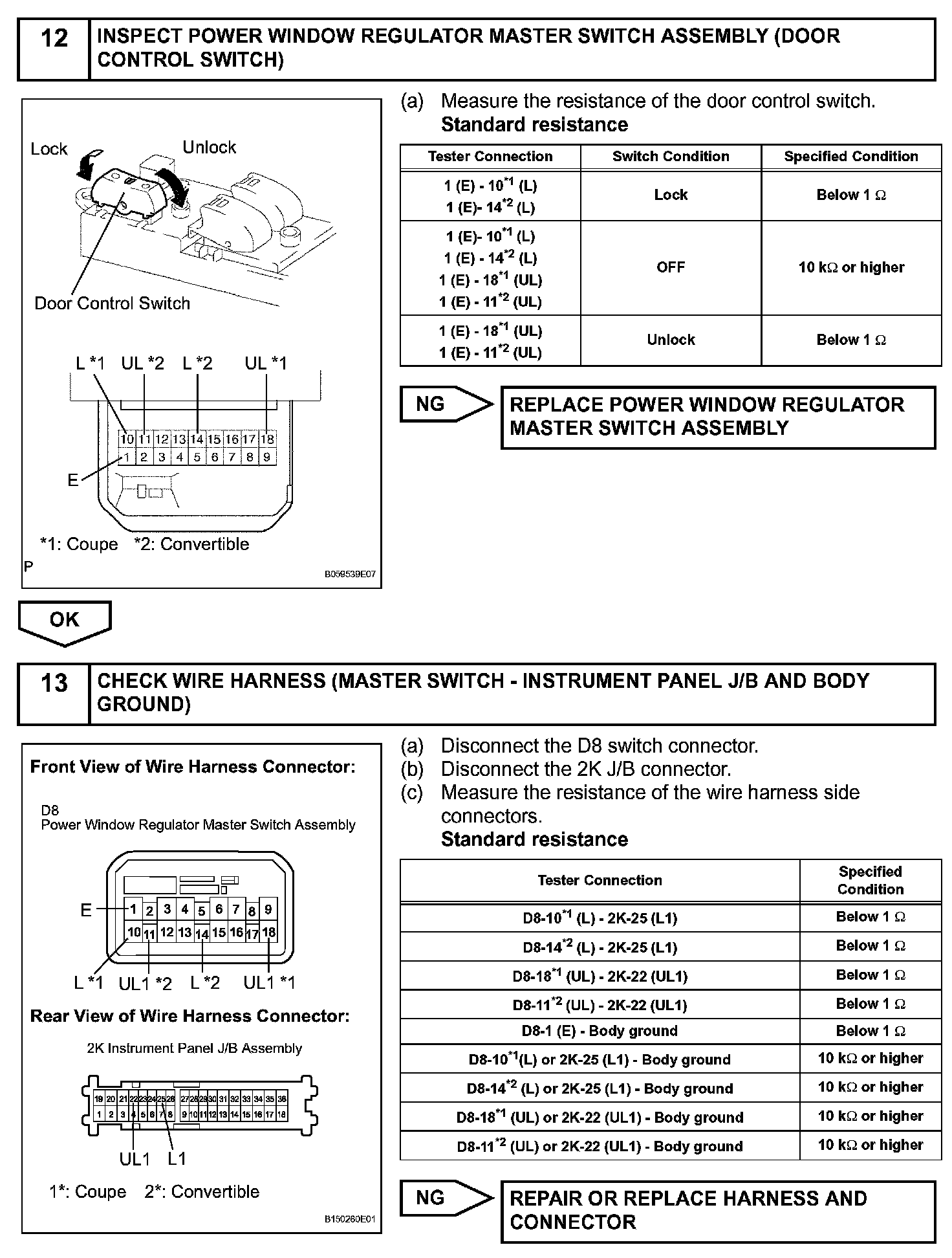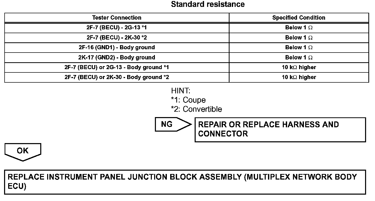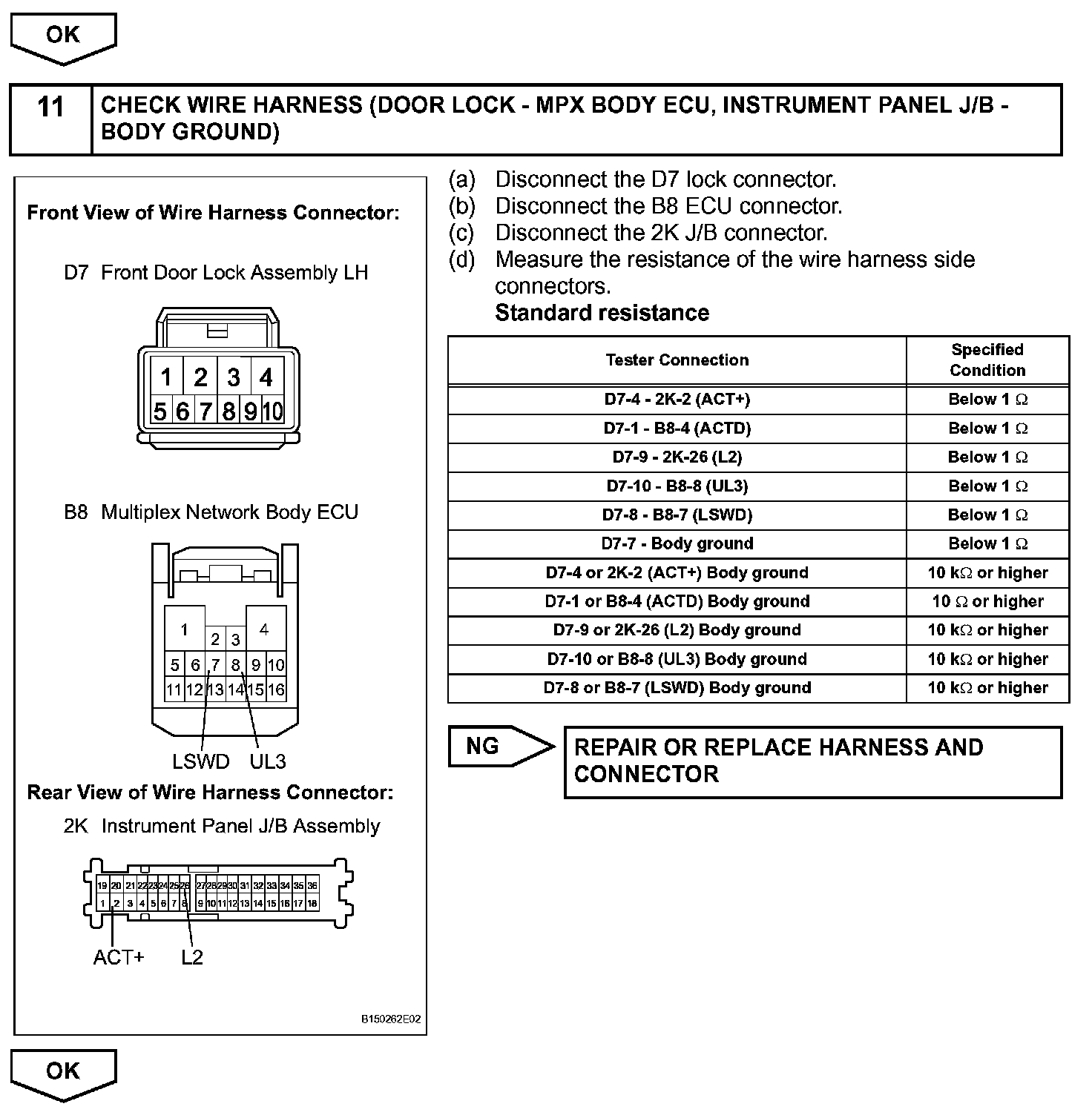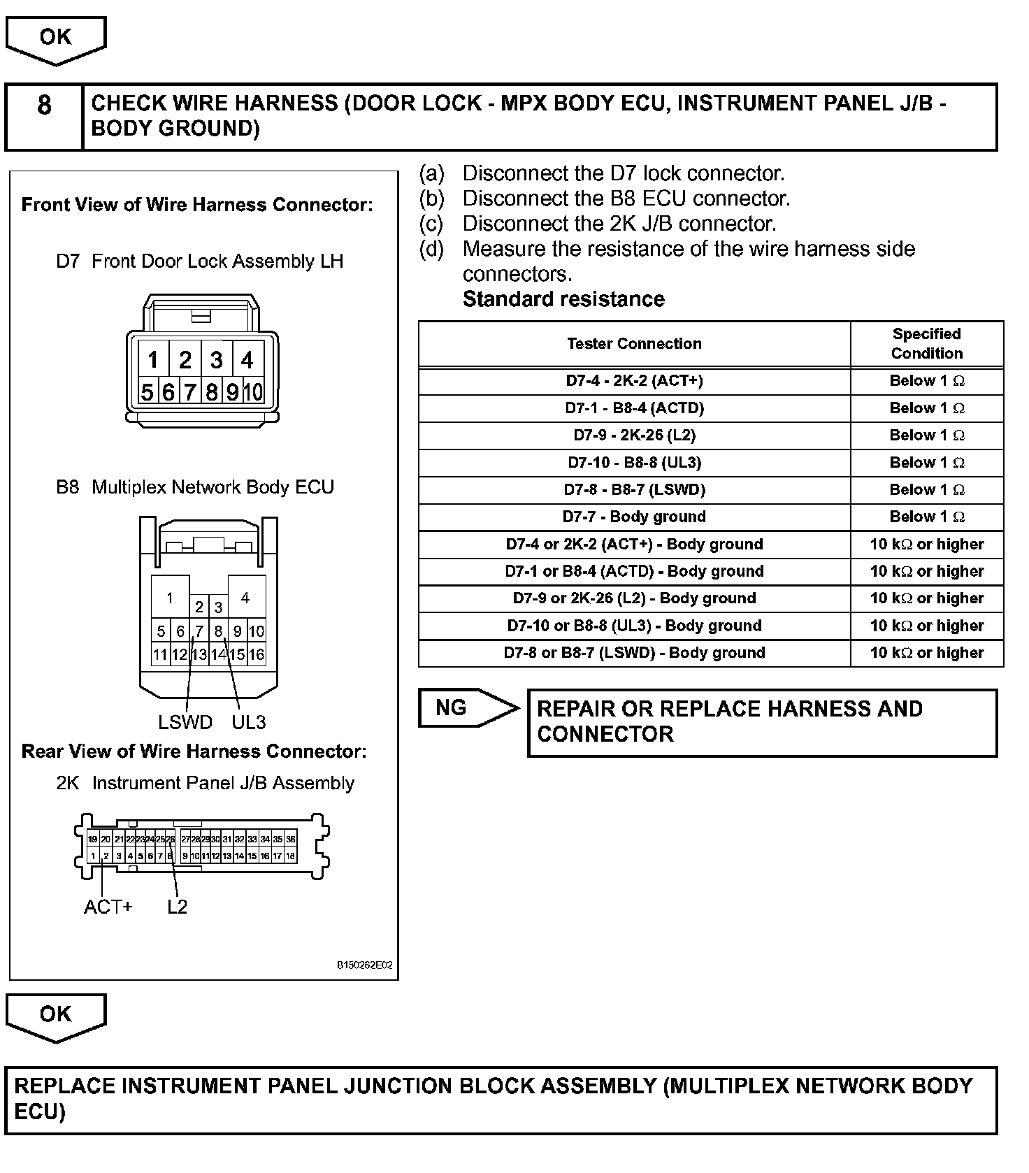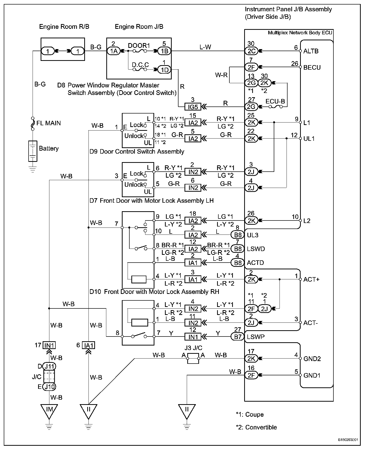 The multiplex network body ECU activates the door lock motors with switch signals from the master switch, door control switch and driver/passenger side door key cylinder.