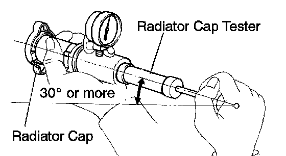 ^ Before using a radiator cap tester, wet the relief valve and pressure valve with engine coolant or water.