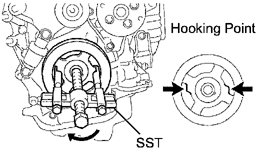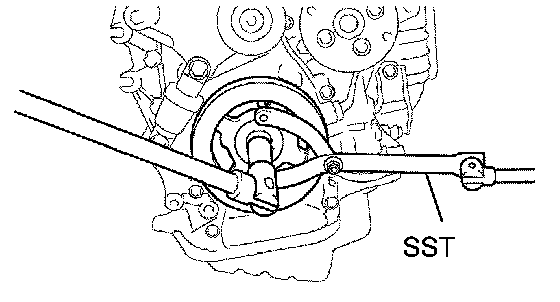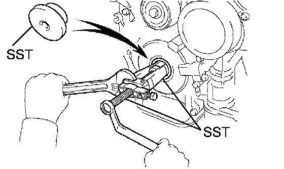 (b) Using SST, remove the pulley bolt and pulley.