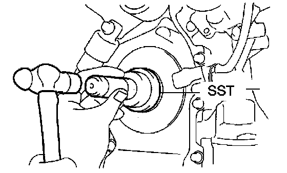 (b) Using SST and a hammer, tap in the oil seal until its surface is flush with the rear oil seal retainer edge.