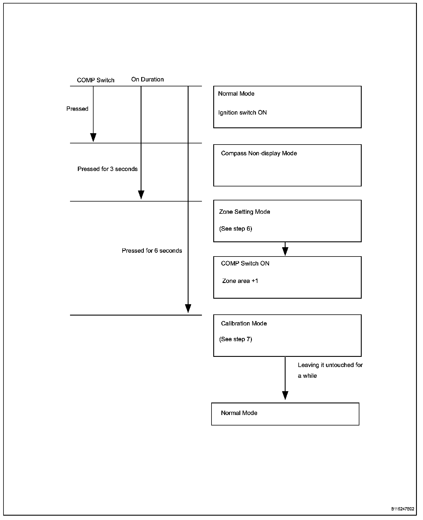 HINT: After the calibration is completed, it is not necessary to perform the above procedures unless the magnetic field strength of the vehicle drastically changes. If this happens, the azimuthal display will change to "C".