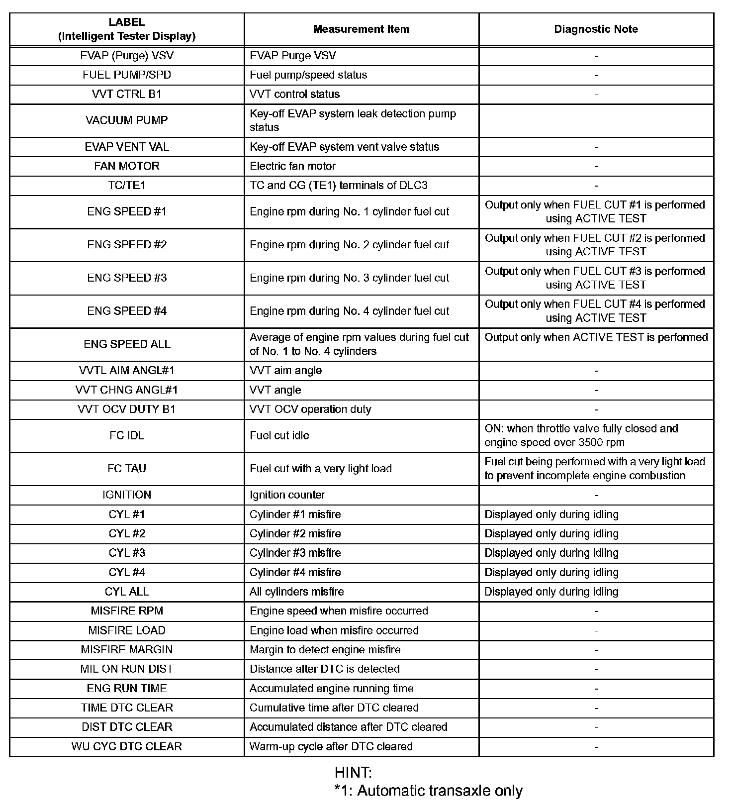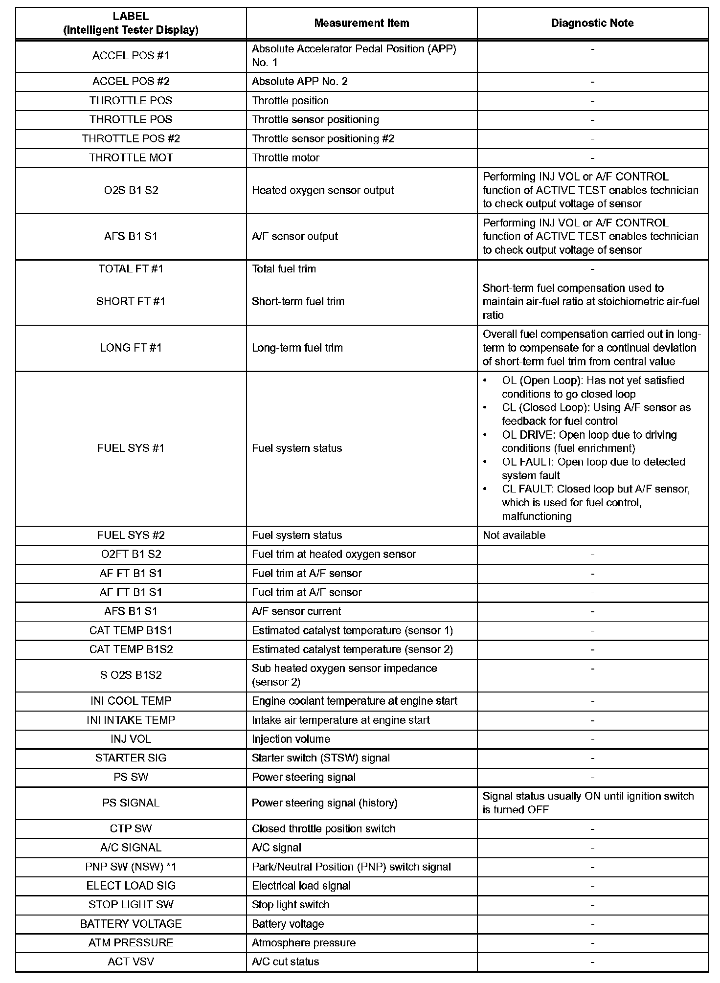 HINT: If it is impossible to duplicate the problem even though a DTC is detected, confirm the freeze frame data. The ECM records engine conditions in the form of freeze frame data every 0.5 seconds. Using the intelligent tester, 5 separate sets of freeze frame data can be checked.