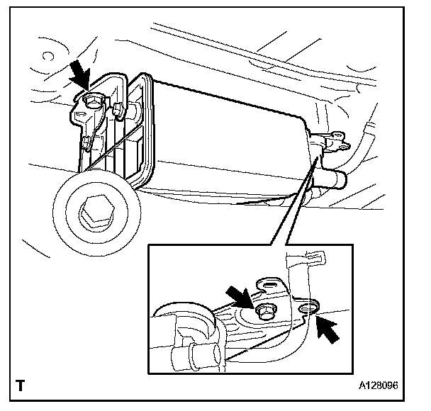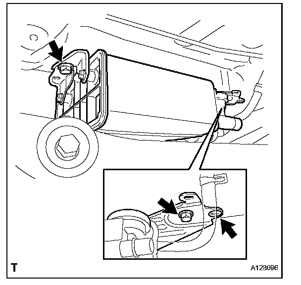 a. Install the 2 bolts, clip and charcoal canister.