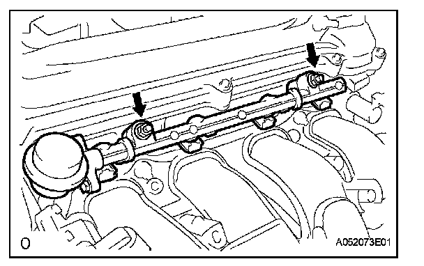 c. Loosely tighten the 2 bolts that hold the delivery pipe to the cylinder head.