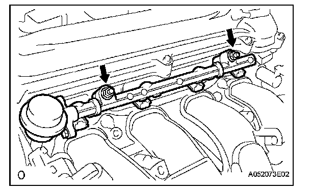 e. Tighten the 2 bolts holding the delivery pipe to the cylinder head.