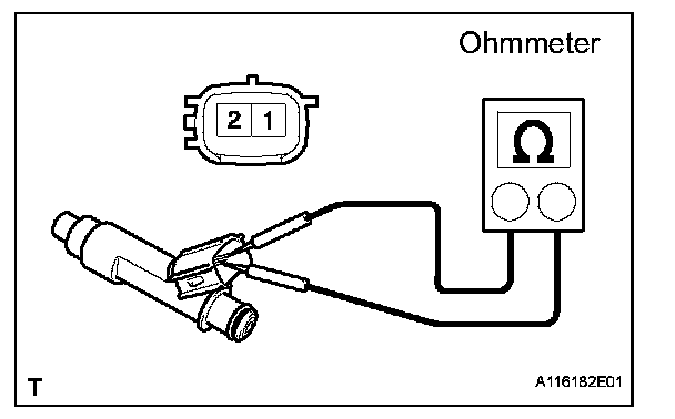 a. Measure the resistance between the injector terminals.