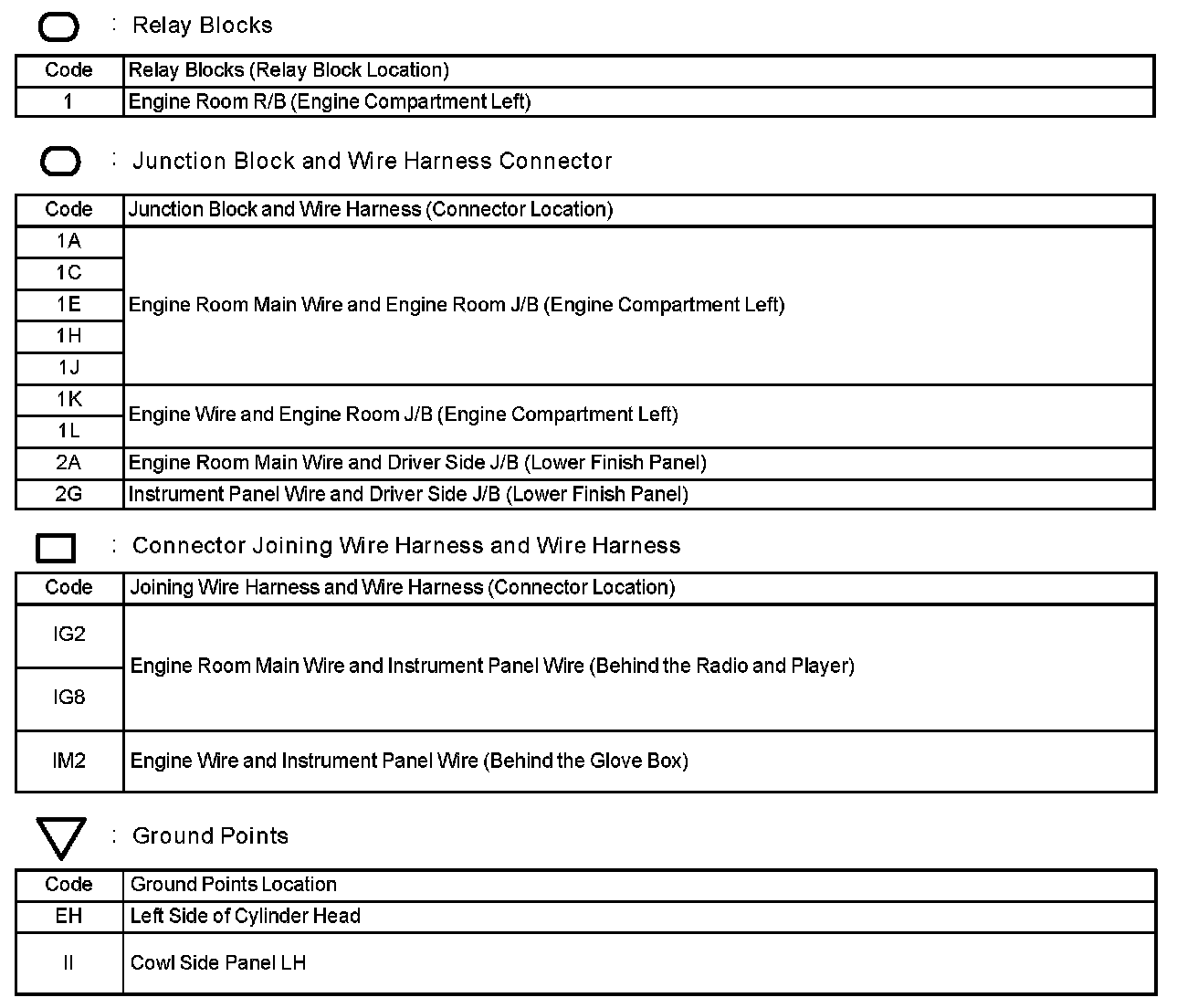 Locations: The locations of components, connectors, ground points, and splices referred to within these diagrams can be found at Vehicle Locations. Locations