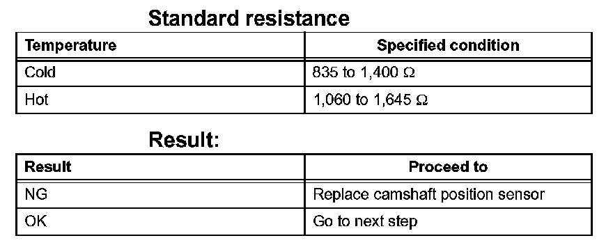 4. Check resistance of camshaft position sensor.