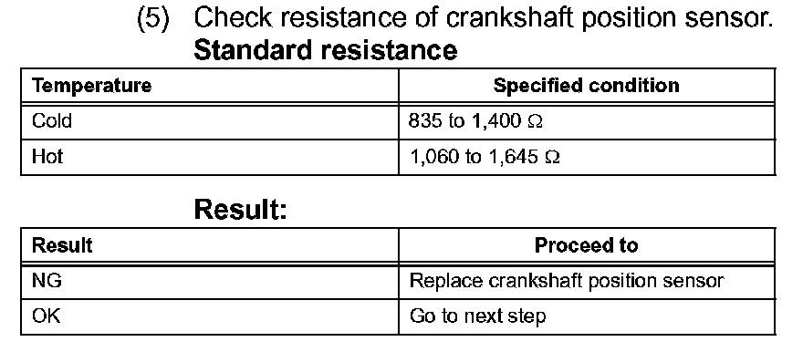 5. Check resistance of crankshaft position sensor.