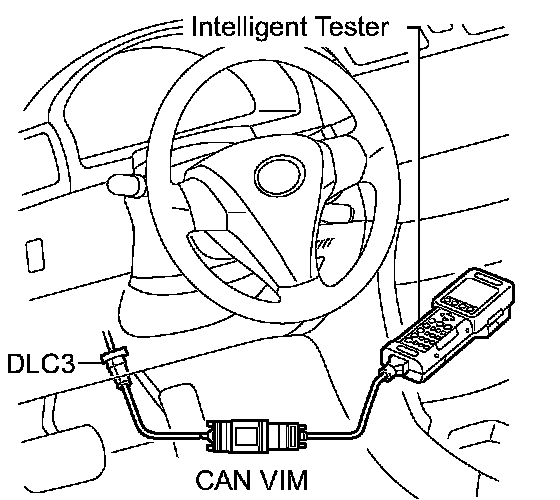 (3) Connect the intelligent tester together with the Controller Area Network Vehicle Interface Module (CAN VIM) to the DLC3.