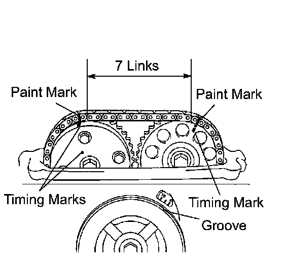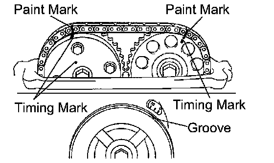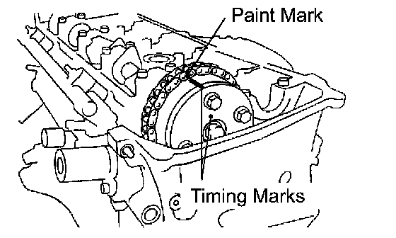 (b) Place paint marks on the timing chain and camshaft timing gear/sprocket.