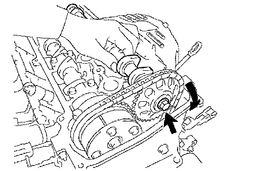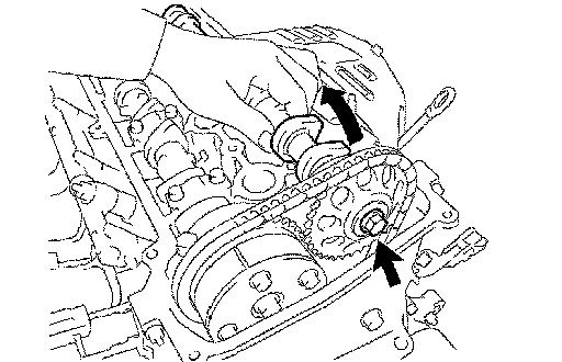 (5) Remove the camshaft timing sprocket from the timing chain.