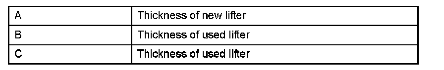 (2) Calculate the thickness of a new lifter so that the valve clearance comes within the specified value.