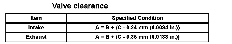 Intake valve clearance (Cold): 0.19 to 0.29 mm (0.008 to 0.011 inch)