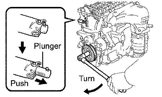 (4) Turn the crankshaft clockwise, and check that the chain tensioner slipper is pushed by the plunger.