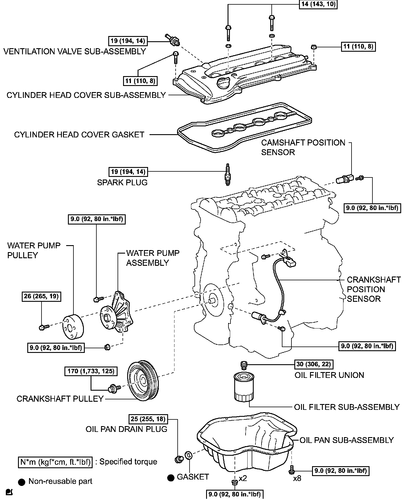 Torque: 19 Nm (194 kgf-cm, 14 ft. lbs.)