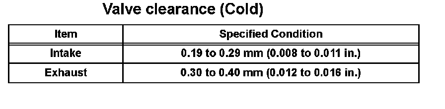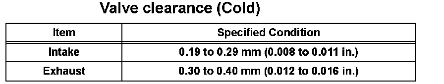 Valve Clearance (Cold):