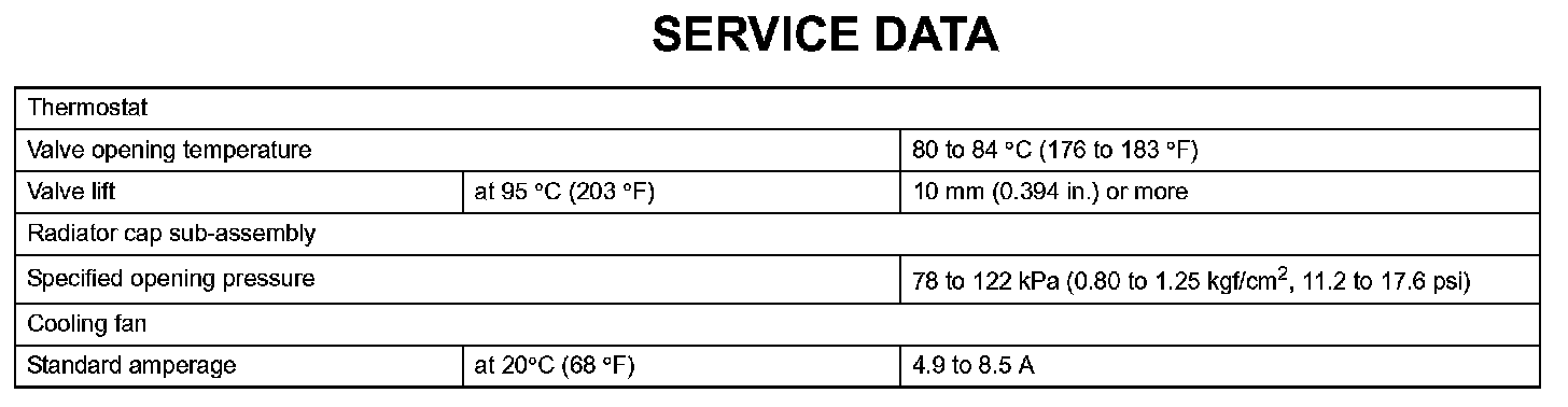 Cooling - Service Data: