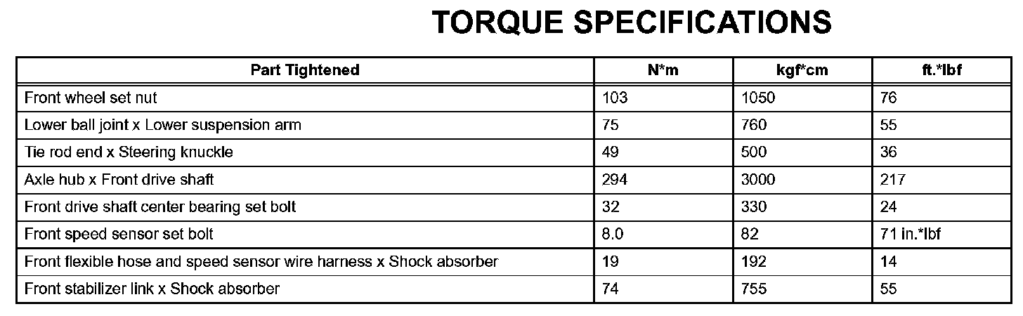 Drive Shaft - Torque Specifications: